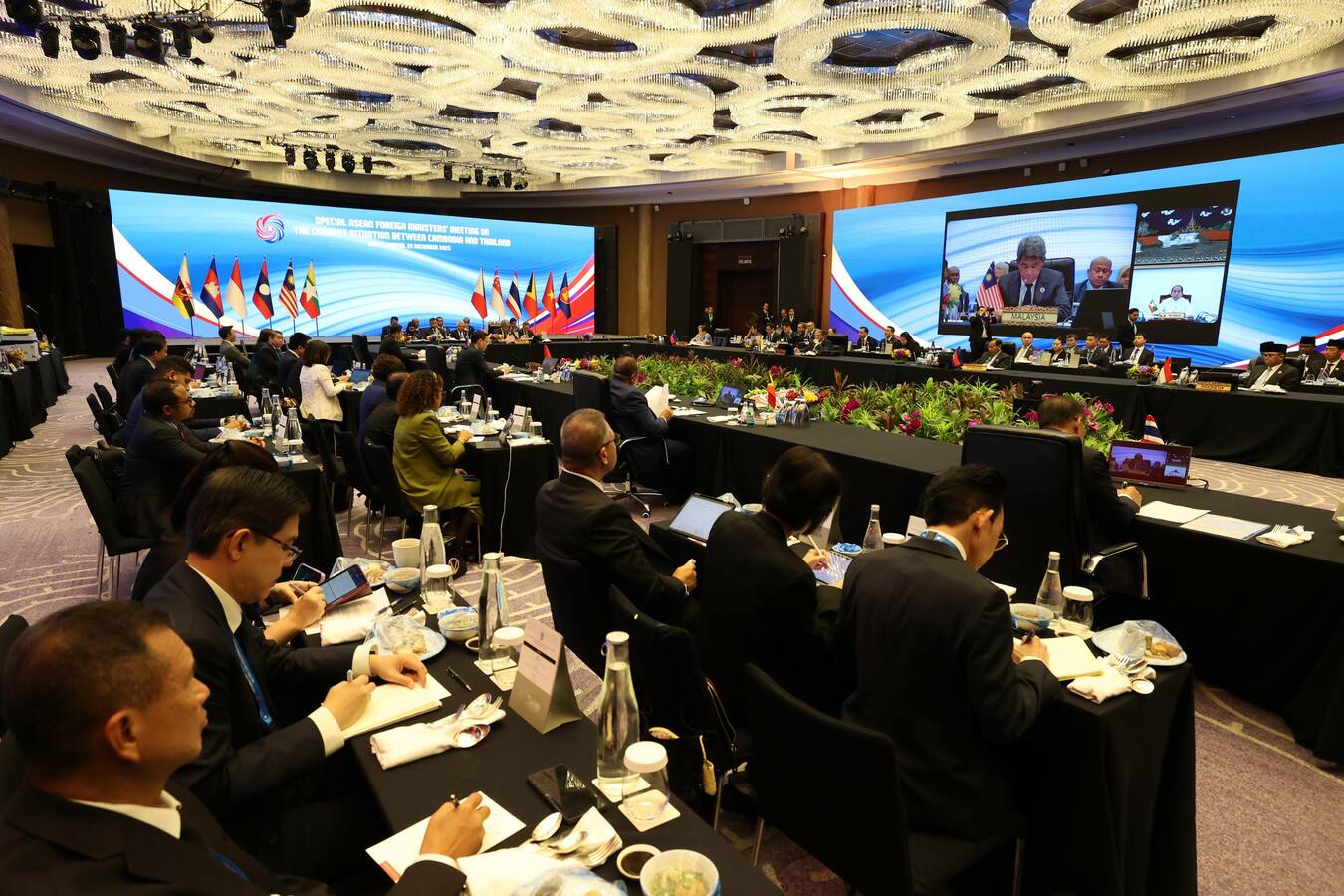 កិច្ចប្រជុំពិសេសរដ្ឋមន្ត្រីការបរទេសអាស៊ាន ស្តីពីស្ថានភាពបច្ចុប្បន្ន រវាងកម្ពុជា និងថៃ បានចាប់ផ្តើមហើយនៅព្រឹកថ្ងៃទី២២ ខែធ្នូ ឆ្នាំ២០២៥ នៅទីក្រុងគូឡាឡាំពួ ប្រទេសម៉ាឡេស៊ី ដែលដឹកនាំដោយឯកឧត្តម Mohamad Hasan រដ្ឋមន្ត្រីការបរទេសម៉ាឡេស៊ី និងមានការចូលរួមពីសំណាក់ឯកឧត្តម ប្រាក់ សុខុន ឧបនាយករដ្ឋមន្ត្រី រដ្ឋមន្ត្រីការបរទេស និងសហប្រតិបត្តិការអន្តរជាតិ នៃព្រះរាជាណាចក្រកម្ពុជា និងបណ្តារដ្ឋមន្ត្រីការបរទេសអាស៊ាន និងអគ្គលេខាធិការអាស៊ាន។